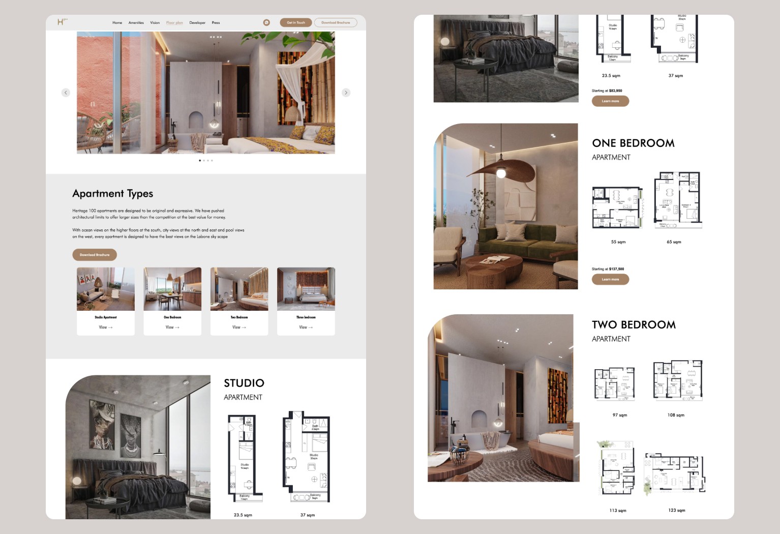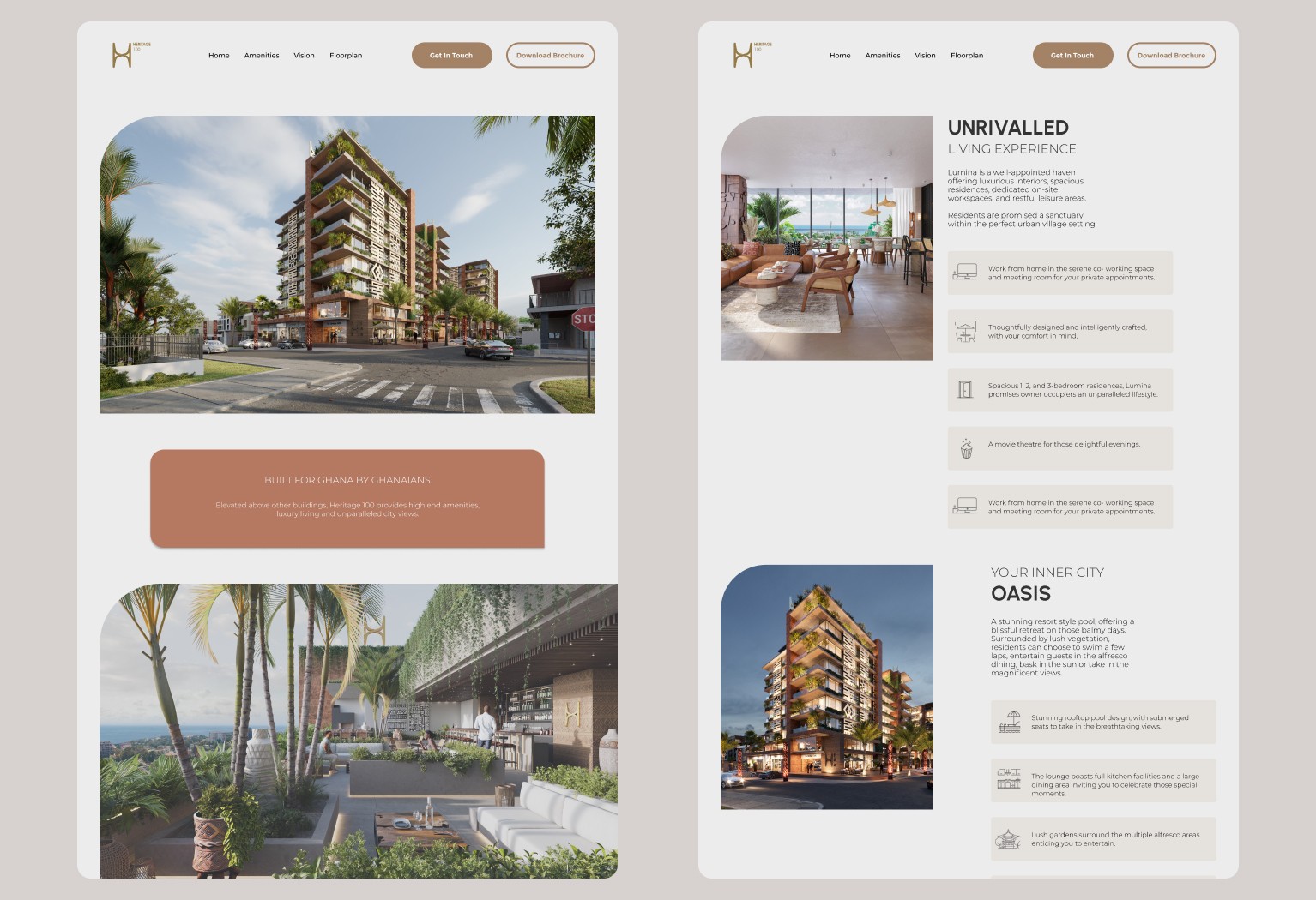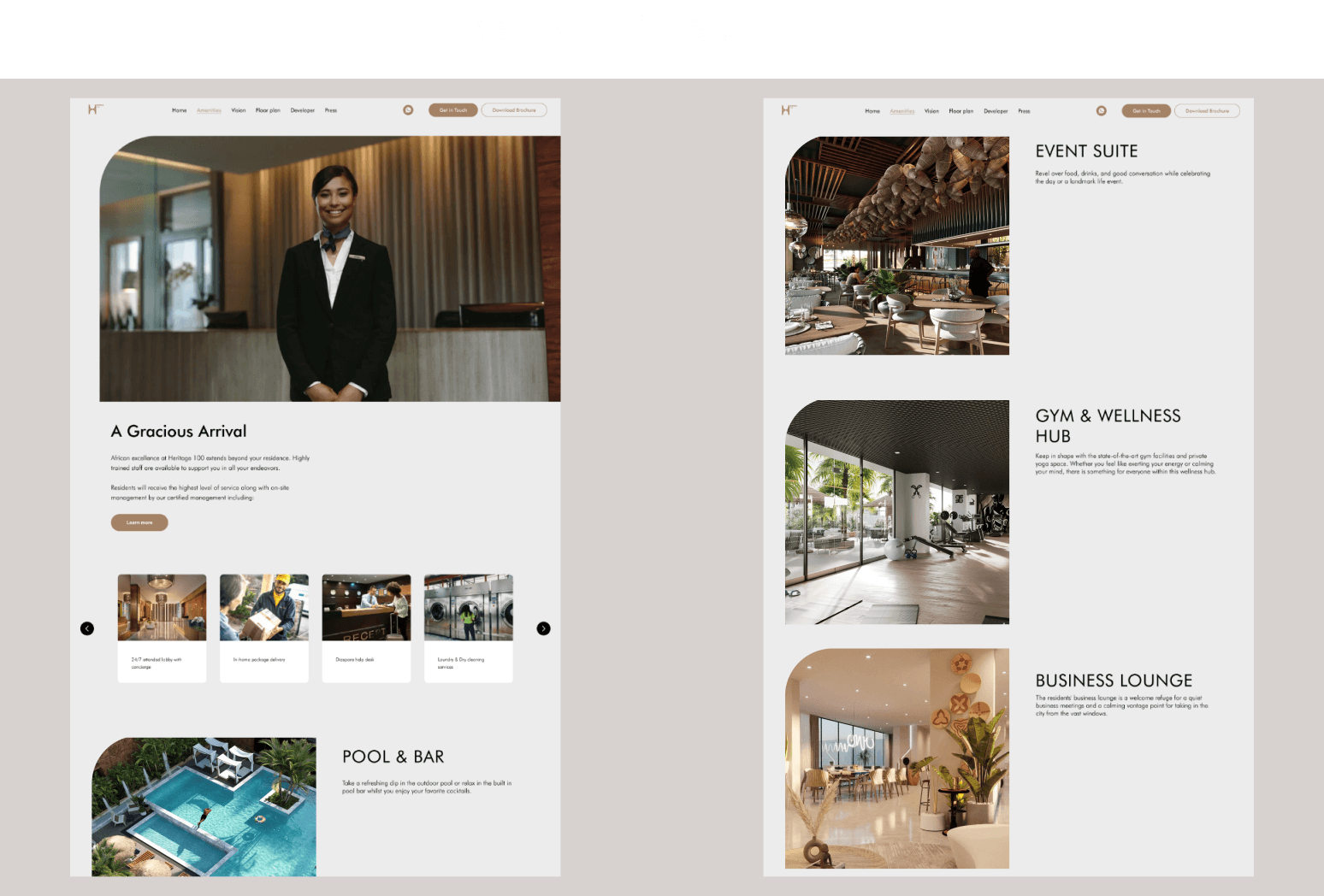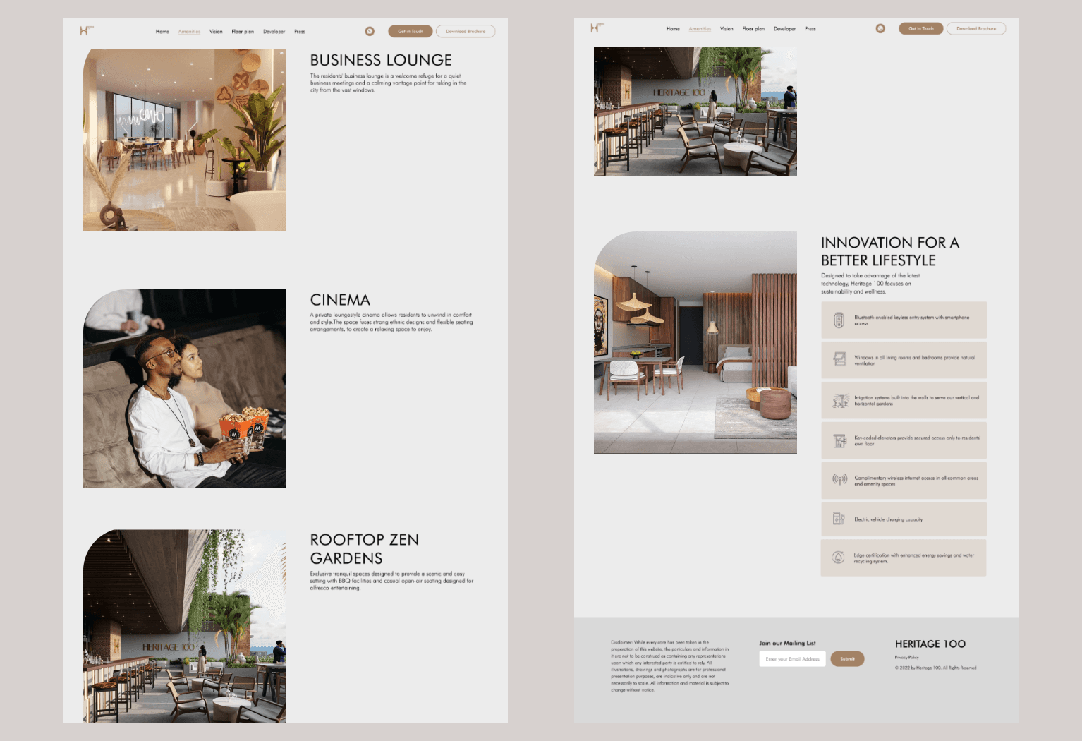 Design and develop an engaging website for Heritage 100 to effectively showcase its luxurious real estate offerings and amenities.