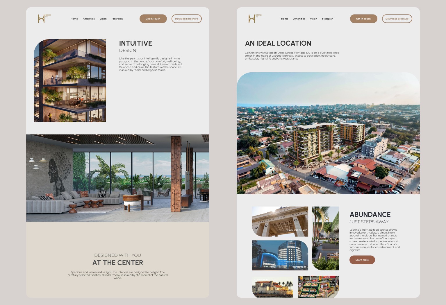 This case study delves into creating a user-centric website for Heritage 100, a prestigious real estate company in Accra Labone, using Figma for design and Tilda for development, comprising four key pages: Home, Amenities, Vision, and Floor Plans.