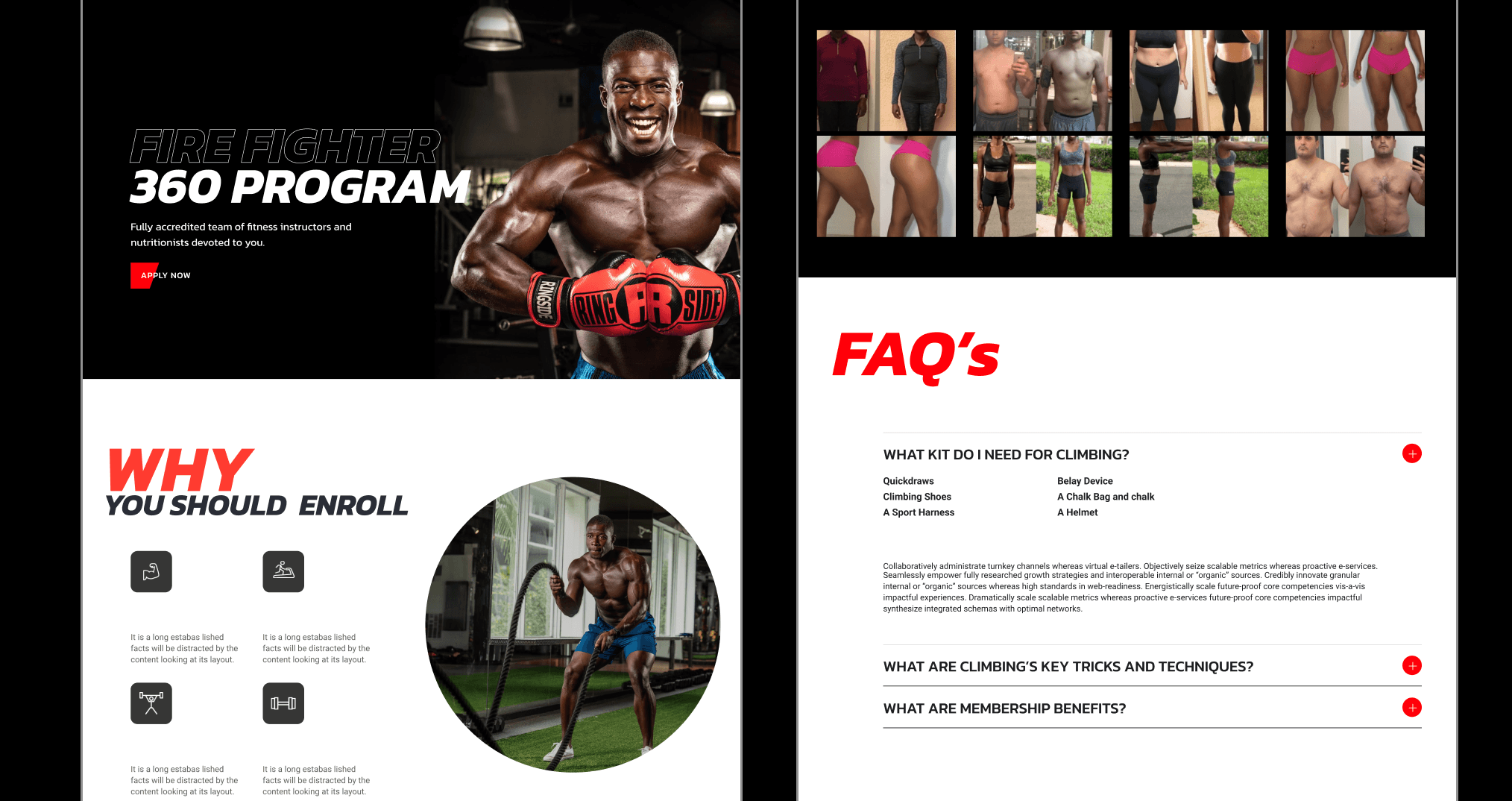 Implemented a clean, modern design with motivational imagery and interactive elements.