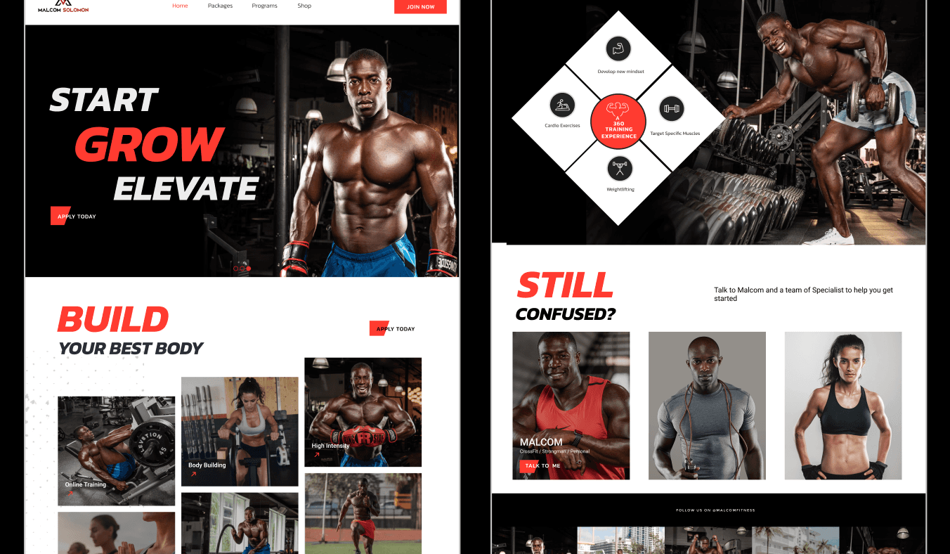 Malcom Fitness, led by Malcom Solomon, is dedicated to providing personalized fitness programs and high-quality fitness merchandise. I designed an engaging and user-friendly website for Malcom Fitness. This case study details the desicisons made in creating the designs