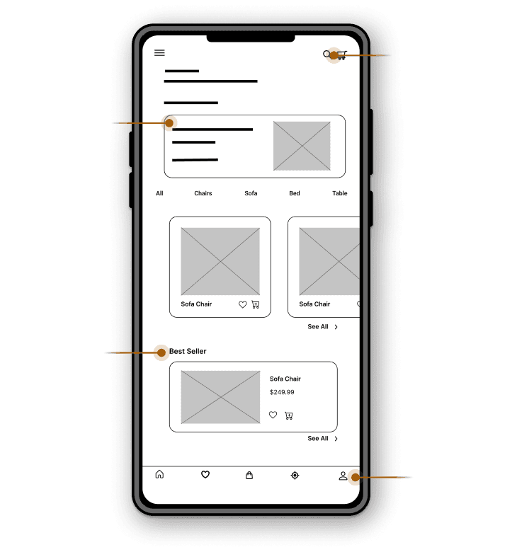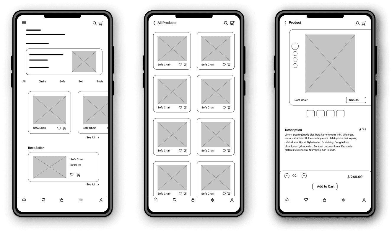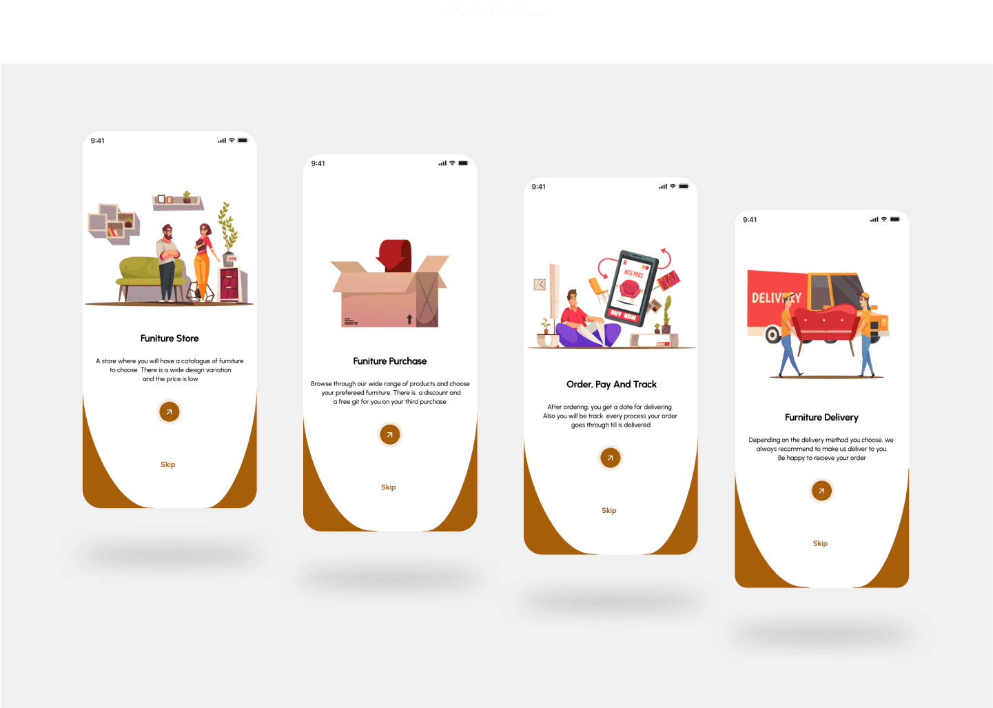 TradeByKofi mobile user interface (UI) designed to enable users to shop for furniture online . This UI aims to address the needs of both customers and the business owner by simplifying the furniture shopping experience.