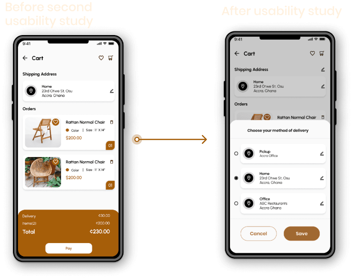 Following the second usability test, a pickup option was introduced, allowing customers to choose to pick up their own items.