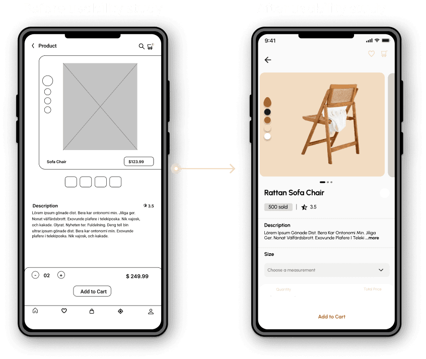 After conducting usability studies, the design was updated to include the price of each product on the homepage, enhancing the overall user experience.